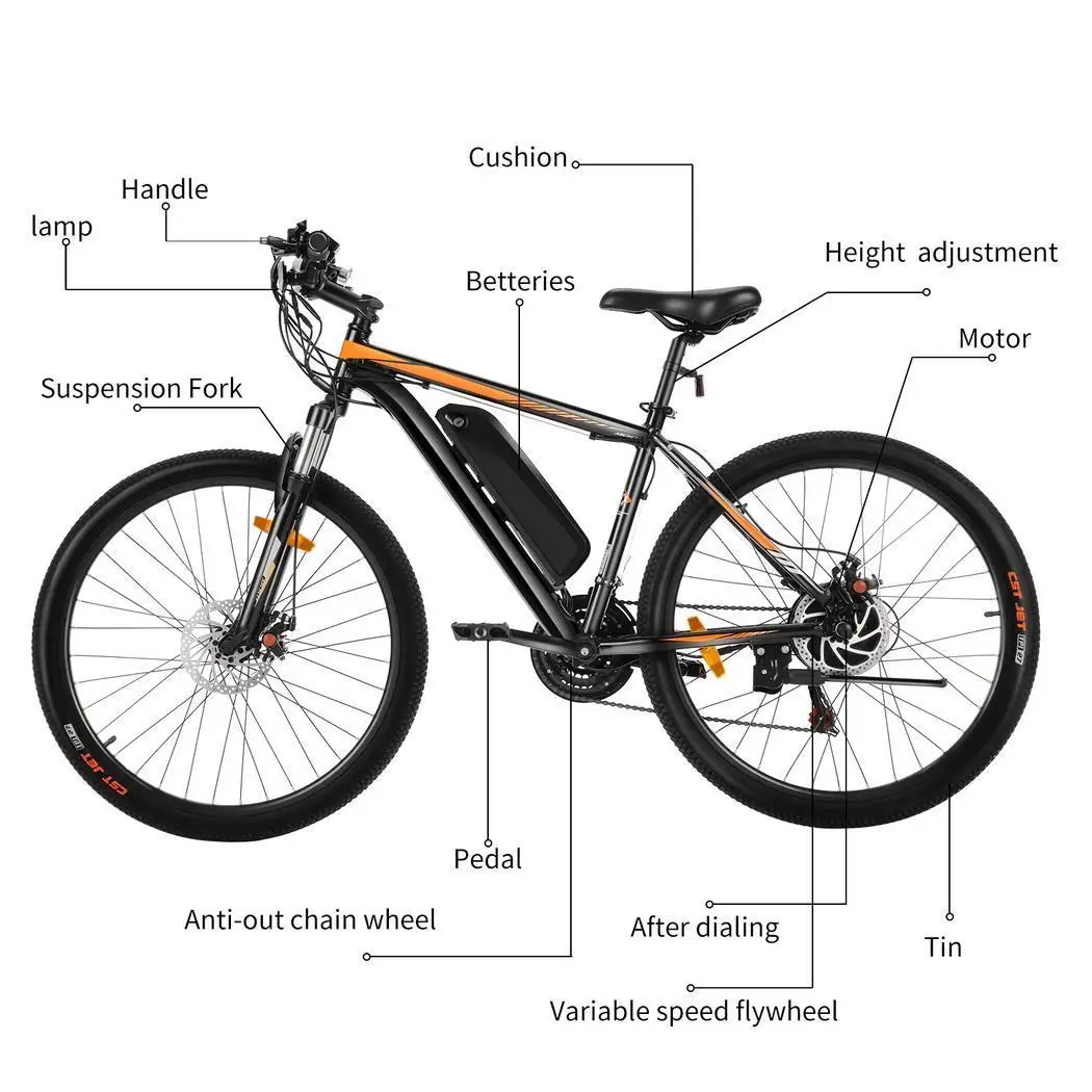 E-Mountain-City-Bike, 26Zoll, Motor 350Watt, abnehmbare Akku-Li-Batterie, Scheibenbremsen, Rahmen-Aluminium-Legierung